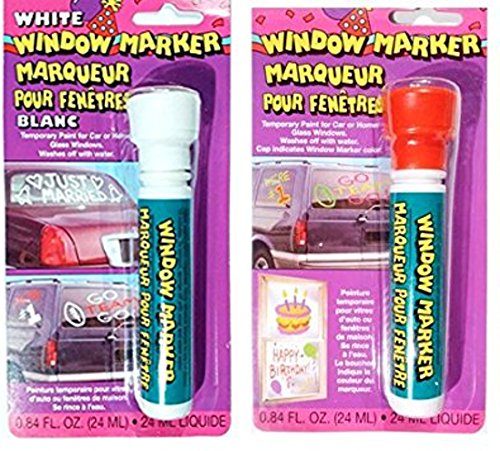 Window Marker - (Temporary Paint for Car or Home Windows - Washes Off with Water) Temporary paint for car or home windows. Use for sports events, special days such as birthdays, holidays or for other fun non-permanent uses. Dries in about 10 minutes. Sponges off with soap and hot water.Fun Color Combinations - Valentine's Day Colors