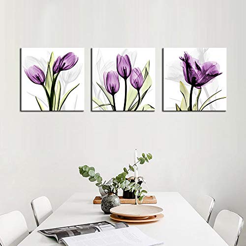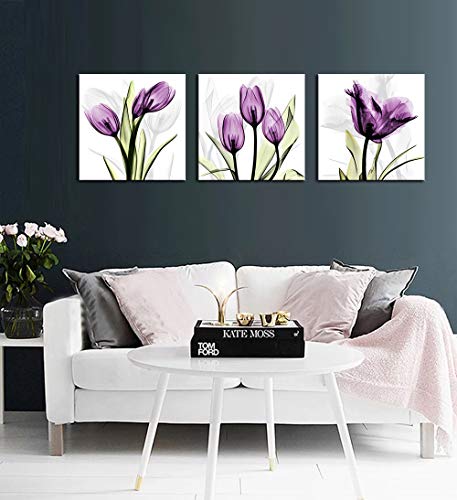 3 Pcs flower canvas painting multi color tulip canvas wall art simply fresh Artwork for for living room, bedroom, kitchen, office, hotel, dining room, office, bar etc..Stretched and Framed canvas art prints ready to hang for home decorations wall decor. Each panel has a black hook already mounted on the wooden bar for easy hanging out of box.