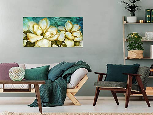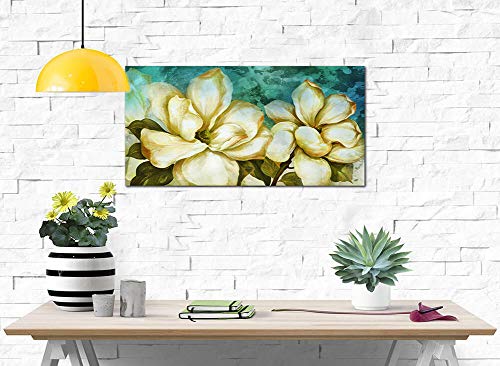 FLOWER ART SIZE:20x40inches,length:40inches,high:20inches.Stylish 'Gardenia' hand-painted canvas wall art.